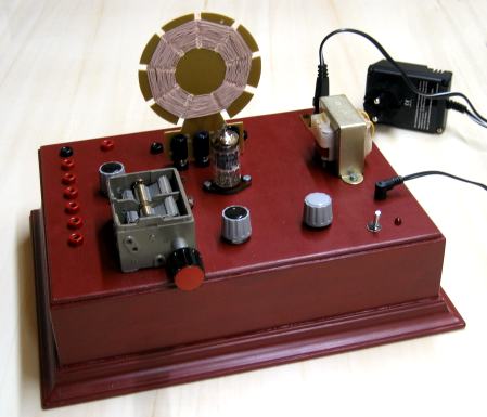 Die Schaltung wurde im wesentlichen unverändert übernommen. Auch die Spulen stammen noch aus dem Originalgerät. Als Drehkondensator habe ich jedoch eine Ausführung mit Feintrieb eingesetzt. Das macht sich besonders bei der Sendersuche im Kurzwellenbereich positiv bemerkbar. Die Funktion des Ausgangsübertragers übernimmt ein Netztrafo mit einer Sekundärspannung von 10 V.