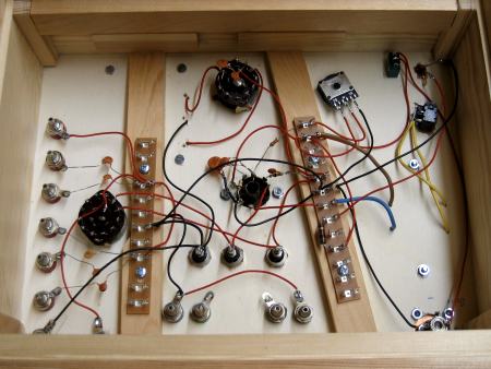 Diese Art "fliegender Verdrahtung" ist nicht ganz nach meinem Geschmack, aber wie soll man es sonst machen? Immerhin habe ich zwei Lötösenleisten angebracht, so dass keine Bauteile "im Wind wehen" wie beim Originalgerät.