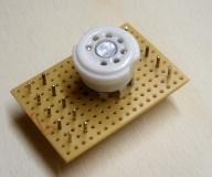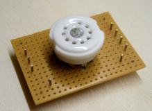Novalfassung. Hier sind die Anschlüsse entsprechend der Fassung angeordnet, also einfach von 1 bis 9, links oben beginnend. Die Anschlüsse 4 und 5 (meistens Heizung) liegen vorne. | Miniatur-Röhrenfassung, speziell für die EF98. Die Anschlüsse links, von oben nach unten: a, g3, g2, g1, k; rechts die Anschlüsse für die Heizung. |