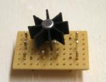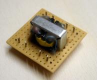 Links: Übertrager 10 : 1. Das Windungsverhältnis ist für Transistorversuche ein wenig hoch, aber es geht.