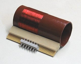 Zylinderspulen sind einfach herzustellen und eignen sich hervorragend als Universalspulen zum Experimentieren, da sie bequem mit mehreren Anzapfungen versehen werden können. Die im folgenden beschriebene Spule enthält 5 Anzapfungen, besteht also aus 6 Teilwicklungen. Bei 5 Teilwicklungen (für den Schwingkreis) hat sie eine Induktivität von etwa 195 uH.