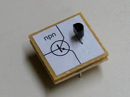 Transistorbaustein, bestückt mit BC548. Die Basis ist unsichtbar