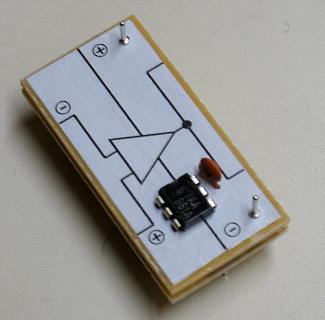 Schließlich noch ein Batteriebaustein. Die "Druckknopfplatte" habe ich aus einer verbrauchten Batterie herausgepuhlt.