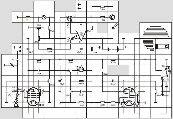 Besonders spannend wird es natürlich bei den Röhrenversuchen. Die Schaltungen werden durchweg mit niedrigen Spannungen bis etwa 50 V betrieben, und so kommen Röhrentypen zum Einsatz, die sich für Niedrigspannungen eignen: ECC81, ECC85, ECL80, EL95, EF80. Besonders die EF80 ist für eigene Versuche interessant, denn sie wurde in großer Stückzahl gefertigt und ist heute noch relativ preisgünstig zu beziehen.
