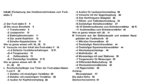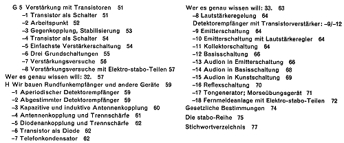Wer nun einen straff durchorganisierten Lehrgang erwartet, sieht sich allerdings getäuscht. Nach einer etwas breiter angelegten Einführung in die elektronischen und insbesondere die radiotechnischen Grundlagen, unterstützt durch einige einfache Versuche, geht es eher zwanglos weiter. In der Reihenfolge der Versuche ist kein eindeutiges System zu erkennen, sondern die Versuche werden so angeboten, wie sie sich mit dem Material der jeweiligen Ausbaustufe umsetzen lassen. Wenn zum Verständnis Theorie erforderlich ist, wird sie an Ort uns Stelle vorgeschoben. Es ist also nicht so, dass sich die Versuchsabfolge aus einem theoretisch-systematischen Kontext ergibt.