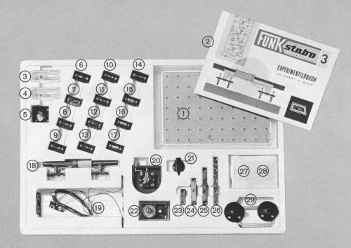Jedem der drei Kästen lag eine transparente Aufbauplatte bei. Es war zweifellos eine gute Idee, mehrere kleine anstatt einer großen Grundplatte zu verwenden. So konnten wiederverwendbare Schaltungsteile wie NF-Verstärker aufgebaut bleiben und mit verschiedenen Empfangsschaltungen verbunden werden.