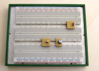 Ich möchte aber noch einmal ausdrücklich betonen, dass die Überlegungen sich nur auf den Einsatz in einem Experimentiersystem beziehen. Wenn man "nur mal" eine Schaltung aufbauen und testen will, liegen andere Bedingungen vor. Dann würde man z.B. hingehen und kleine Drähtchen an den Beinchen des Trimmpotis anlöten. Machbar ist vieles, nur beim Experimentieren sollte es bequem, verwechslungssicher und übersichtlich zu machen sein.