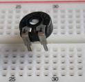 Schließlich gibt es noch eine Reihe von Bauteilen, die sich aufgrund ihrer Bauform nicht direkt stecken lassen, entweder, weil die Anschlüsse nicht dem Rastermaß folgen oder weil die Anschlussdrähte schlicht zu dick sind. Als Beispiel will ich hier nur das Trimmpoti vorstellen.
