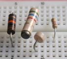 erkennen. Links davon zwei Widerstände mit gut lesbarem Farbcode.