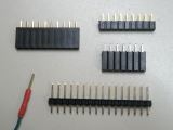 Buchsenleisten müssen natürlich trennbar sein. Es gibt sie in zwei Bauhöhen: etwa 5 mm und etwa 8 mm. Die geringere Bauhöhe wäre zwar praktisch für viele Zwecke, aber die Federbacken sind dabei sehr kurz, entsprechend hart und unelastisch ist der Kontakt. Die kurzen Kontaktfeder leiern sehr schnell aus. Besser ist es, die höhere Bauform zu verwenden.