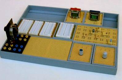 Das folgende Bild zeigt einen bestückten Modulrahmen. Gerätemodule mit Potentiometern usw. werden einfach in den vorderen Schacht gestellt und sind somit leicht zugänglich.