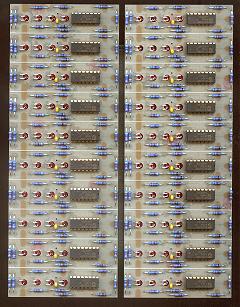 Die beiden unteren Bilder zeigen die Platinen dieses Bausteins im Fertigungsprozess, und zwar von der Vorder- und Rückseite.