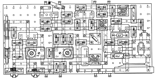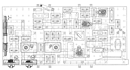 Dieser umfangreiche Versuch erstreckt sich über drei Grundplatten, auf denen es ziemlich gedrängt zugeht. Ohne Aufbauskizze wäre es kaum zuzumuten, die Schaltung aufzubauen.