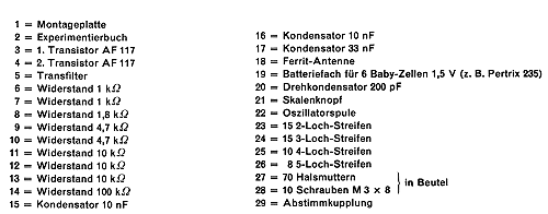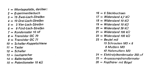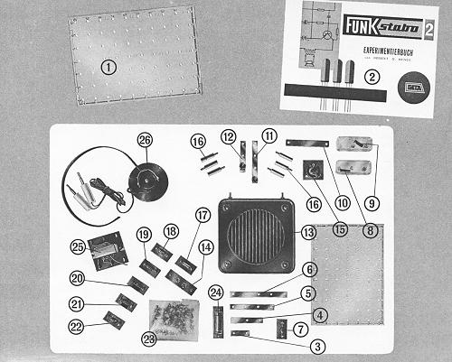 Jedem der drei Kästen lag eine transparente Aufbauplatte bei. Es war zweifellos eine gute Idee, mehrere kleine anstatt einer großen Grundplatte zu verwenden. So konnten wiederverwendbare Schaltungsteile wie NF-Verstärker aufgebaut bleiben und mit verschiedenen Empfangsschaltungen verbunden werden.