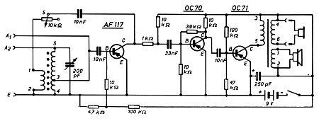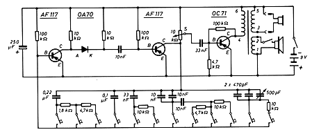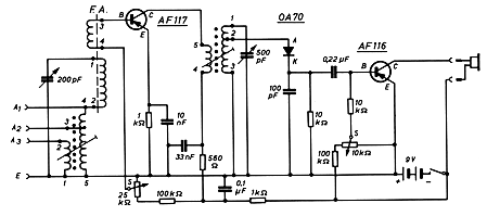 Die umfangreichste Schaltung (MW-Super) wird bei der Beschreibung der Anleitungsbücher ausführlicher vorgestellt. Dort findet sich auch eine verbesserte Darstellung des Schaltbildes.