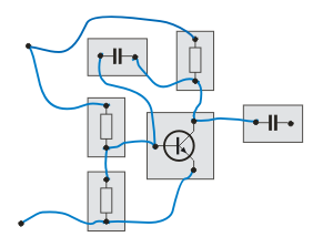 Dazu muss auf der Bauteilplatine für jeden Anschluss ein Kontakt mit mehreren Verbindungsmöglichkeiten verhanden sein. Theoretisch reichen 2, denn bei Knoten mit vielen Verzweigungen kann durchgeschleift werden. Allerdings kann sich dies nachteilig auswirken, z.B. indem längere Leitungen erforderlich werden oder die Verdrahtung unübersichtlich wird. Sinnvoll sind mindestens 3 Anschlussmöglichkeiten pro Kontakt.