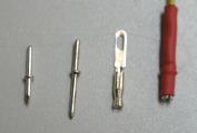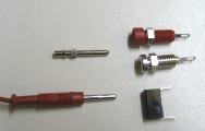 1 mm-Lötstifte passen ausgezeichnet in die Hirschmann-Platte, für Breadboards sind sie zu dick.